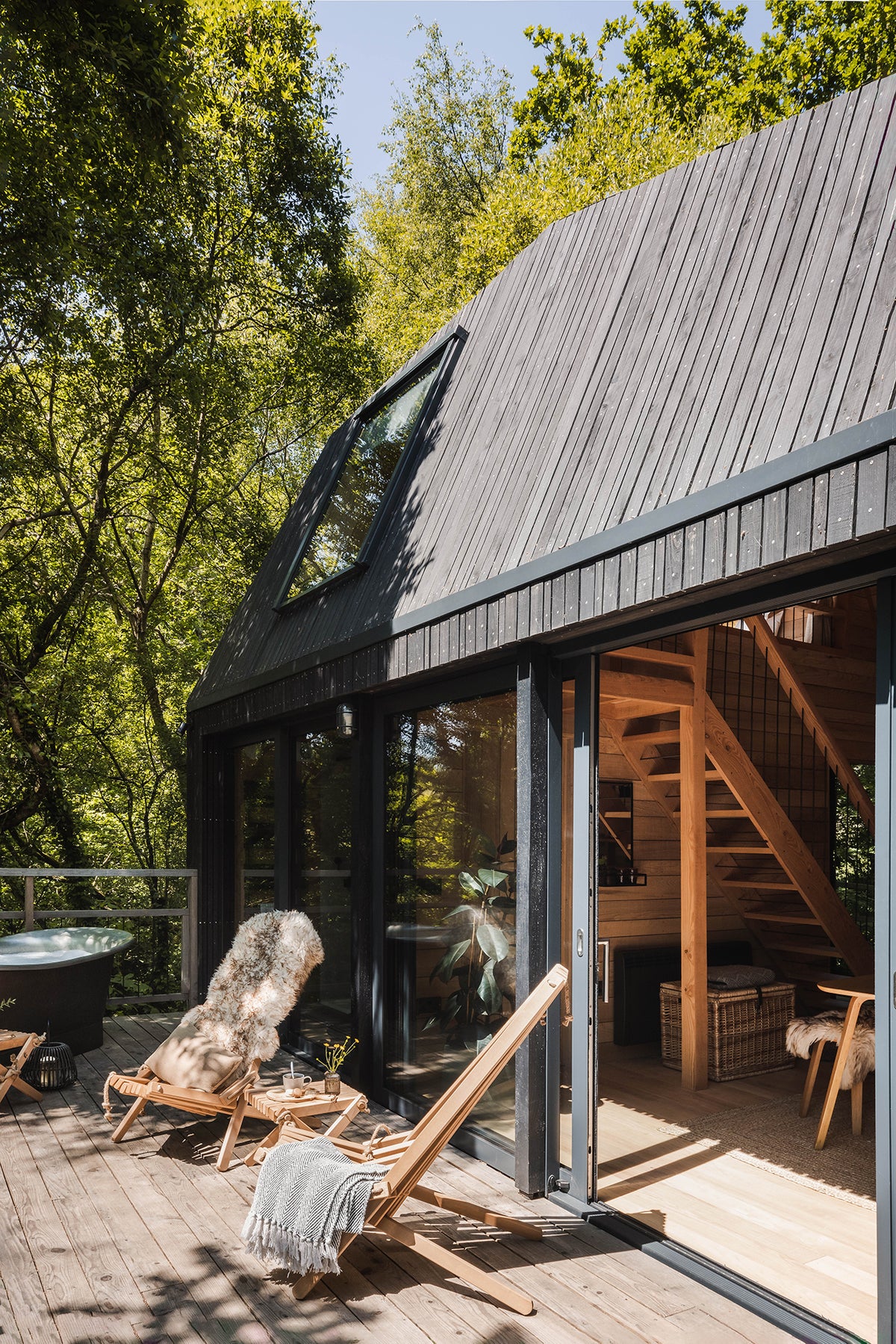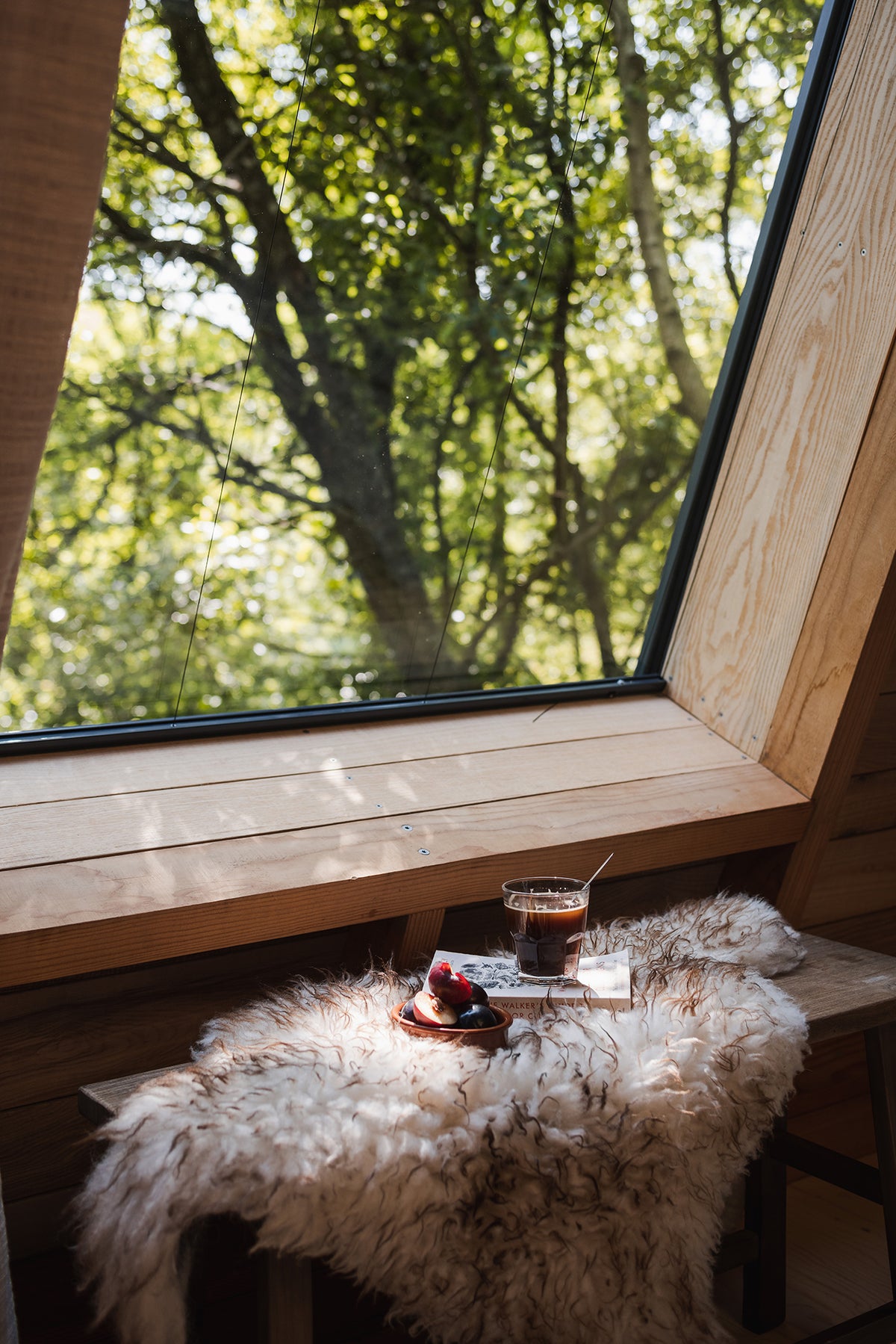 This is where our conversation begins - two friends sitting by the fireside in ‘Blackcap’ one of the Nymetwood Treehouses, tucked away in the Devon countryside.